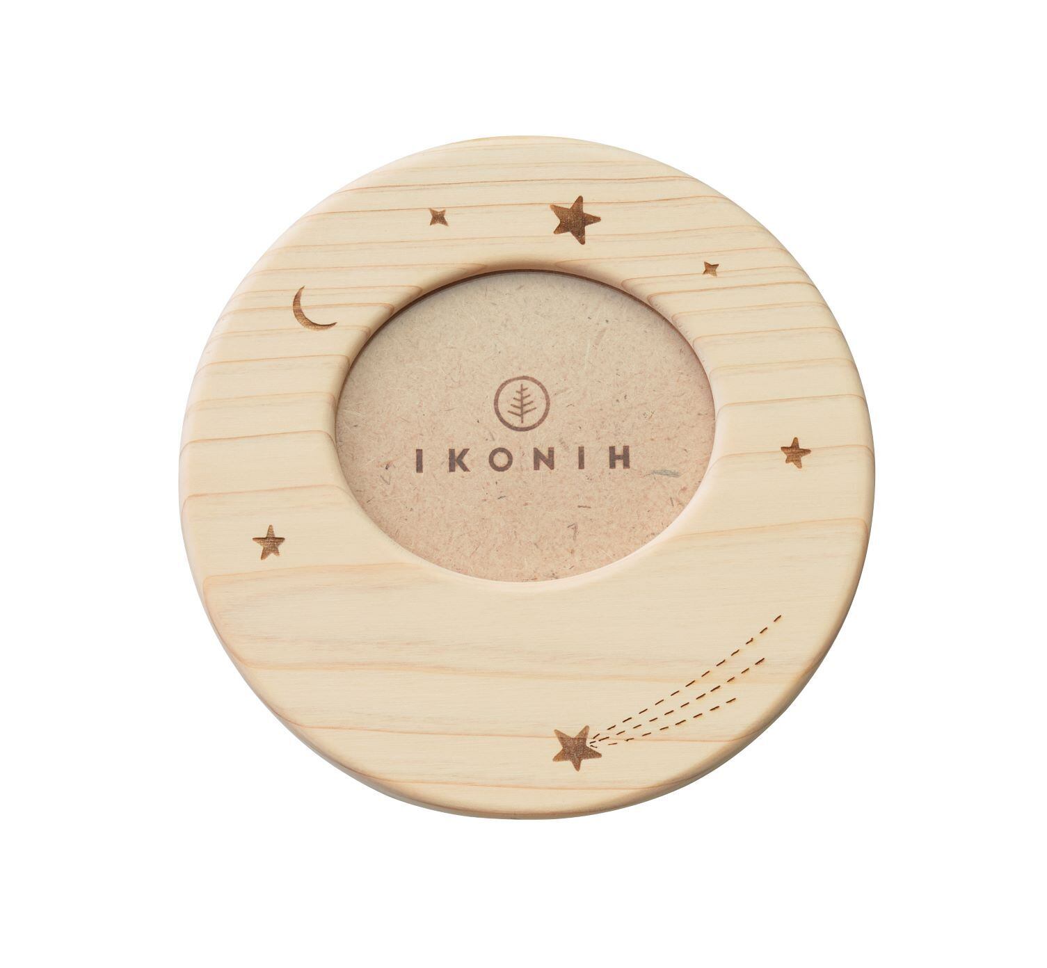 ファーストフォトや想い出の写真を入れられる星空模様のフォトフレームと、おもちゃの持ち運びに便利な布製のおでかけポーチがついたセットです。フォトフレームには55×65mmの写真が入ります。