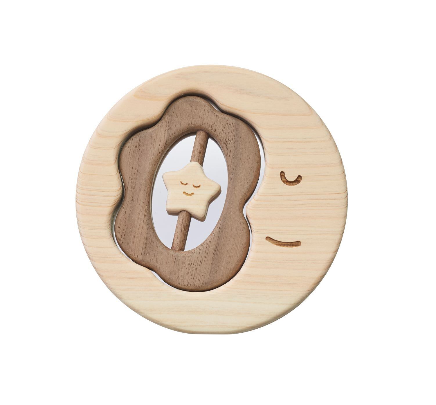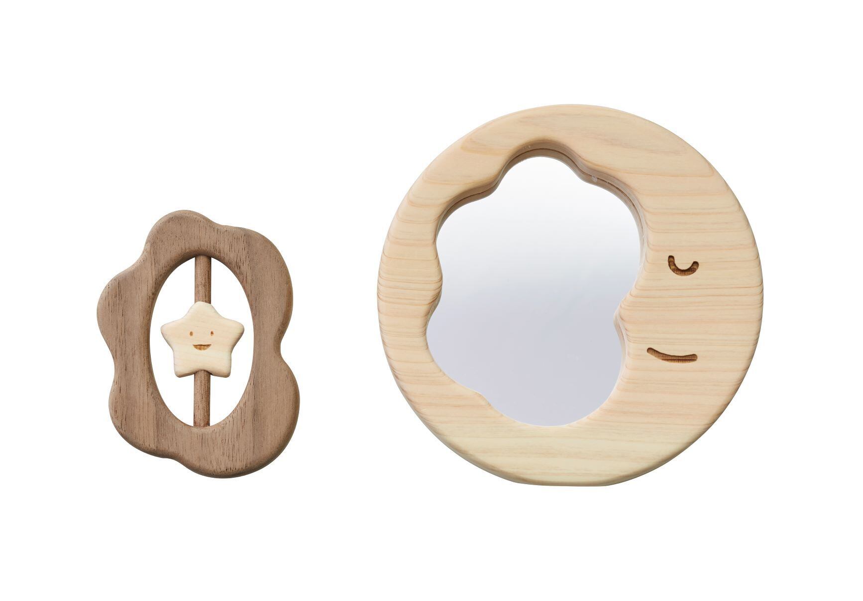 はじめてミラーラトルセットは、赤ちゃんの視覚と触覚の発達をサポートするおもちゃセットです。ミラーラトルには、木の優しい音が鳴る仕掛けがあり、赤ちゃんはその動きに興味を持ちます。鏡で自分の姿をみて夢中になります。安全性にも配慮し、口に入れても安心な素材で作られていますので、歯固めにも適しています。